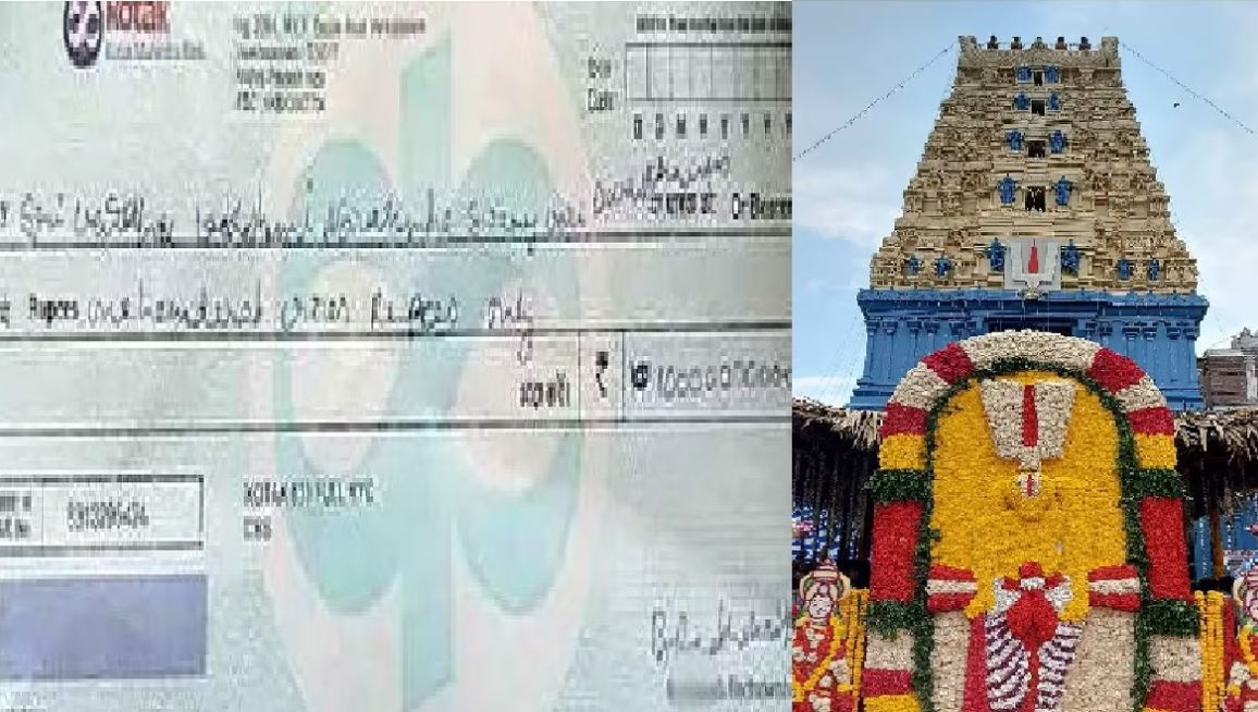 सिम्हाचलम में श्री वराहलक्ष्मी नरसिम्हा स्वामी मंदिर में एक भक्त ने मंदिर के दानपात्र में 100 करोड़ रुपये का चेक जमा किया है। जब मंदिर के अधिकारियों ने संबंधित बैंक को चेक भेजा, तो वे यह जानकर हैरान रह गए कि भक्त के खाते में केवल 17 रुपये थे। चेक की तस्वीर गुरुवार को सोशल मीडिया पर सामने आई। चेक पर बोड्डेपल्ली राधाकृष्ण के हस्ताक्षर थे।