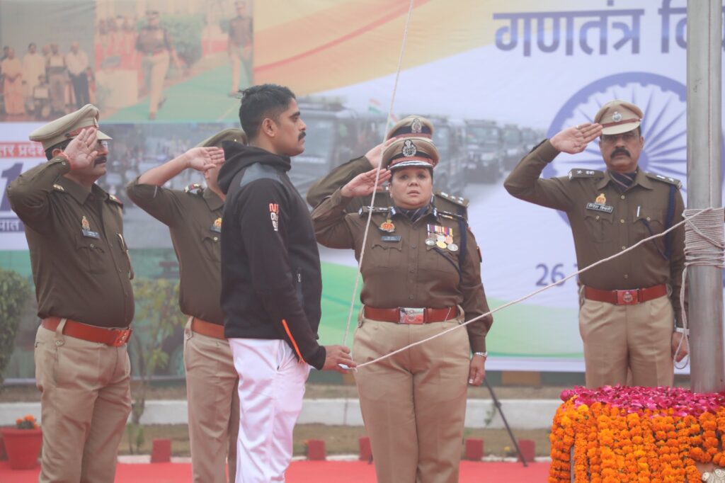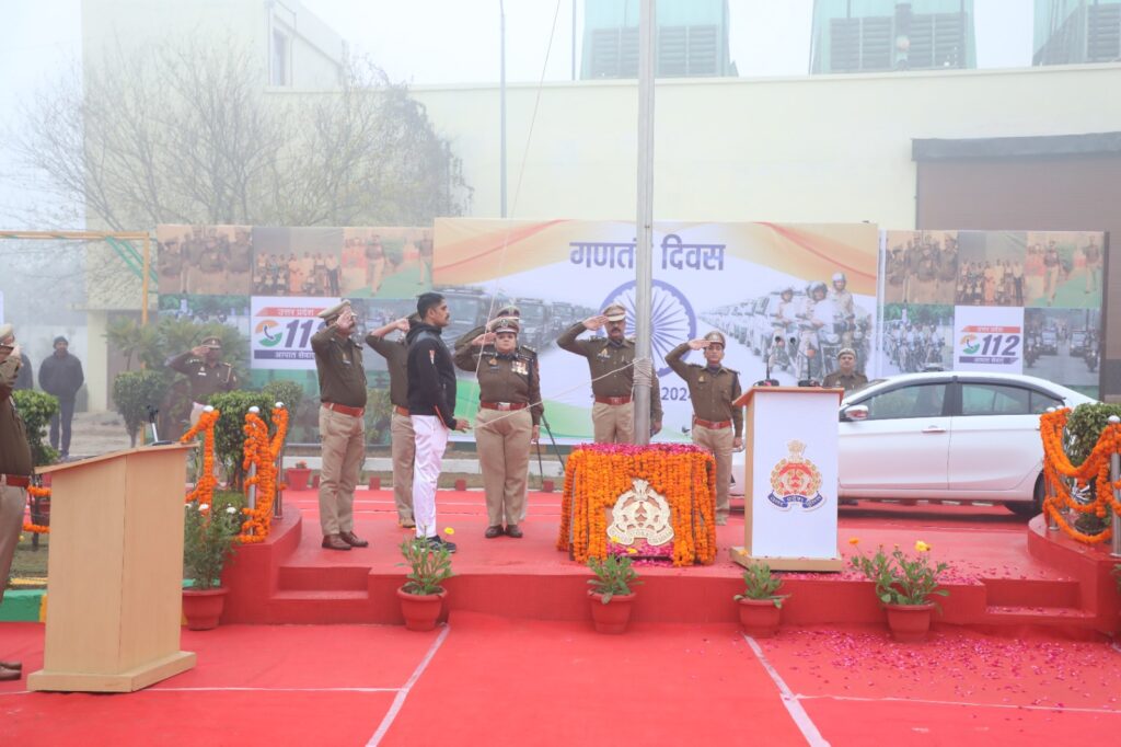 लखनऊ : यूपी-112 मुख्यालय पर 75 वाँ गणतंत्र दिवस समारोह धूमधाम से मनाया गया. एडीजी-112, श्रीमती नीरा रावत ने ध्वजारोहण कर राष्ट्रीय ध्वज को सलामी दी. इस मौके पर एडीजी ने सराहनीय कार्य करने वाले पुलिस कर्मियों, दूसरों की मदद के लिए 112 को कॉल करने वाले जागरूक नागरिकों को सम्मानित किया। गणतंत्र दिवस के मौके पर प्रदेश भर में यूपी-112 द्वारा 547 कर्मियों को सम्मानित किया गया.इनमे से 510 पुलिस कर्मी और 37 सहयोगी संस्थाओं के निजी कर्मी शामिल हैं.