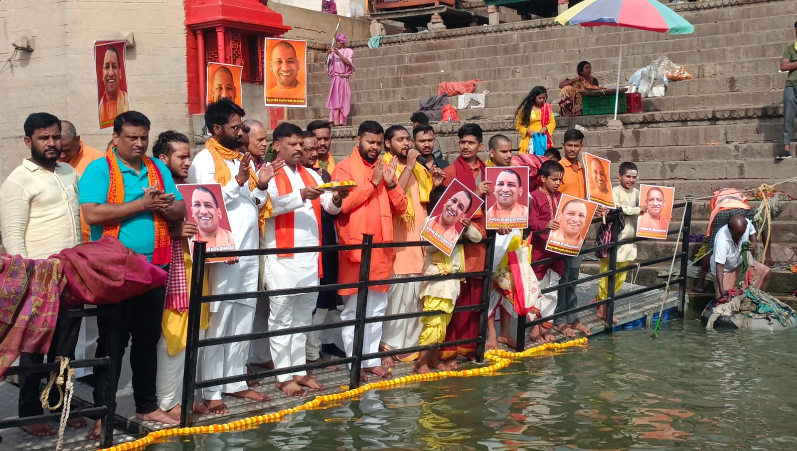 वाराणसी। उत्तर प्रदेश के मुख्यमंत्री योगी आदित्यनाथ का 5 जून को 52वें जन्मदिन के अवसर पर काशी में विशेष पूजन किया गया। हिंदू युवा वाहिनी के कार्यकर्ताओं ने सीएम योगी आदित्यनाथ के जन्मदिन पर उनके दीर्घायु होने की कामना को लेकर मां गंगा का 101 लीटर दूध से अभिषेक किया।