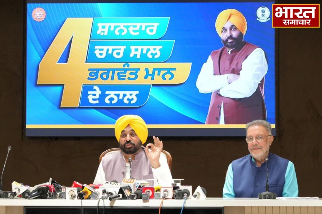 चंडीगढ़: ‘शानदार चार साल, भगवंत मान के साथ’ श्रृंखला को जारी रखते हुए पंजाब के मुख्यमंत्री भगवंत सिंह मान ने आज स्वास्थ्य क्षेत्र का चार वर्षों का रिपोर्ट कार्ड पेश किया। इससे पहले कृषि और सिंचाई क्षेत्रों में ‘आप’ सरकार के कार्यों का विवरण दिया गया था। ‘शर्तों वाली’ आयुष्मान भारत योजना और ‘आप’ सरकार की मुख्यमंत्री सेहत योजना के बीच अंतर स्पष्ट करते हुए उन्होंने मुख्यमंत्री स्वास्थ्य योजना को एक सार्वभौमिक और सुलभ स्वास्थ्य मॉडल बताया और जोर देकर कहा कि फर्क इरादे और क्रियान्वयन में है।
