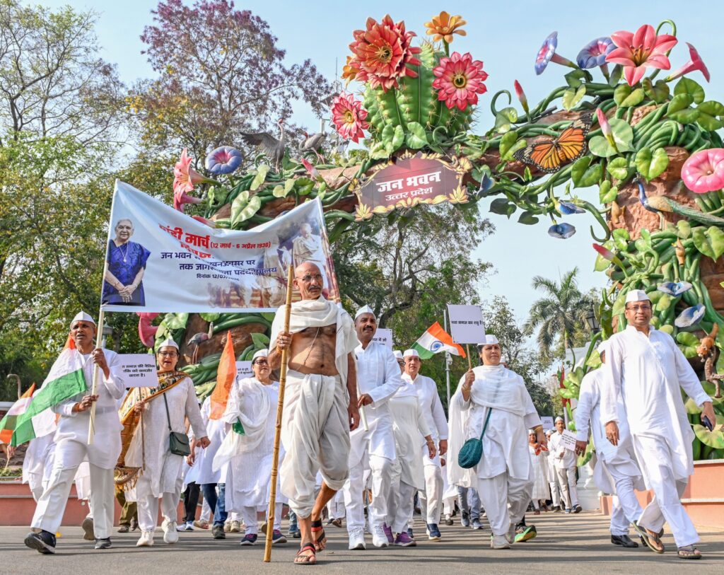 उत्तर प्रदेश की राज्यपाल आनंदीबेन पटेल की प्रेरणा और मार्गदर्शन में लखनऊ में ऐतिहासिक दांडी मार्च की स्मृति में एक प्रतीकात्मक पदयात्रा का आयोजन किया गया। यह यात्रा जन भवन से शुरू हुई, जिसे विशेष कार्याधिकारी (अपर मुख्य सचिव स्तर) डॉ. सुधीर महादेव बोबडे ने हरी झंडी दिखाकर रवाना किया। यात्रा से पहले जन भवन परिसर में गांधीजी की प्रतिमा पर माल्यार्पण कर उन्हें श्रद्धांजलि अर्पित की गई।