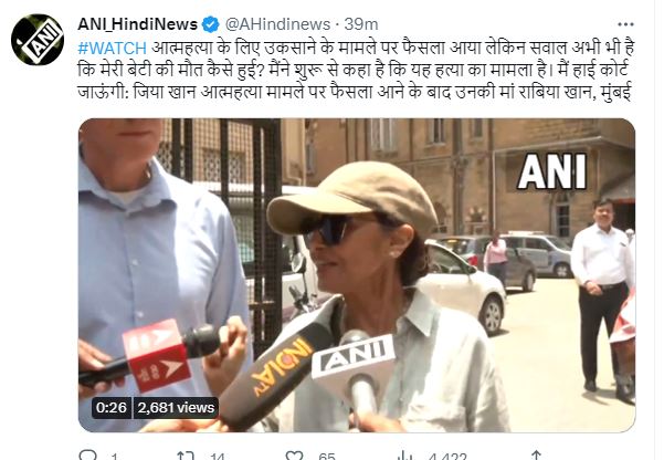वहीं, मृत अभिनेत्री जिया खान की मां राबिया खान ने कहा कि आत्महत्या के लिए उकसाने के मामले पर फैसला आया है. लेकिन सवाल अभी भी है कि मेरी बेटी की मौत कैसे हुई? मैंने शुरू से कहा है कि यह हत्या का मामला है. मैं हाई कोर्ट जाऊंगी.
