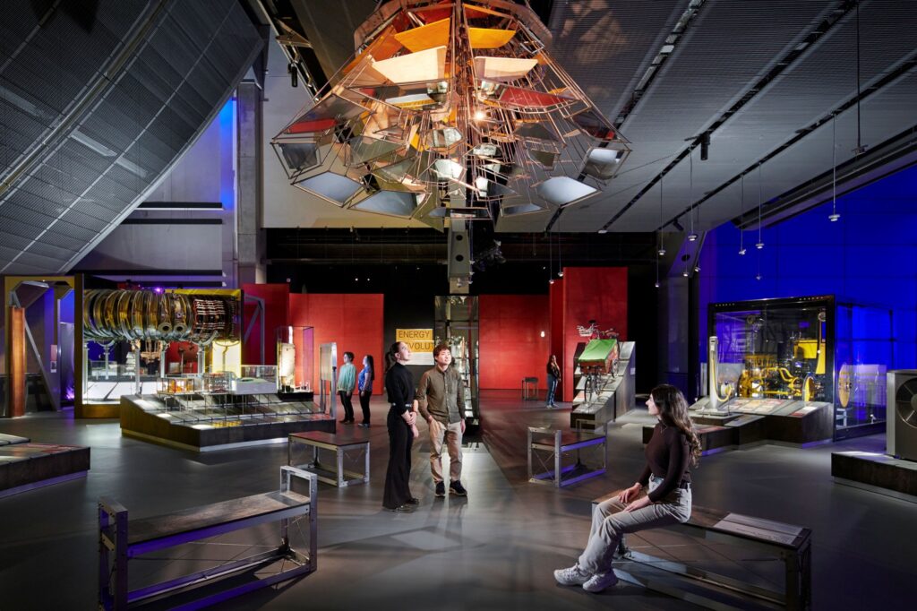 - Future Energy: कम कार्बन ऊर्जा तकनीकों और ऐतिहासिक ऊर्जा उपकरणों का प्रदर्शन। इसमें 1897 का पहला इलेक्ट्रिक टैक्सी, 1882 का सार्वजनिक बिजली नेटवर्क, 5 मीटर ऊँचा सोलर ट्रफ मिरर और 7 मीटर लंबा टाइडल टर्बाइन ब्लेड शामिल हैं। इसके अलावा न्यूक्लियर फ्यूजन और रोल्स-रॉयस SMR मॉडल भी प्रदर्शित हैं।
