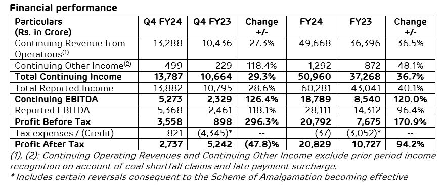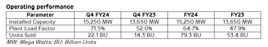 वित्तीय वर्ष 2023-24 की चौथी तिमाही के परिचालन प्रदर्शन में एपीएल की सहायक कंपनी अदानी पावर (झारखंड) लिमिटेड (एपीजेएल) का 1600 मेगावाट का गोड्डा अल्ट्रासुपरक्रिटिकल थर्मल पावर प्लांट (“यूएससीटीपीपी”) शामिल है, जिसे वित्तीय वर्ष 2023-24 की पहली तिमाही में चालू किया गया था। चौथी तिमाही के साथ-साथ वित्तीय वर्ष 2023-24 के दौरान, मुंद्रा, नए चालू हुए गोड्डा प्लांट, उडुपी और महान के नेतृत्व में लगभग सभी संयंत्रों द्वारा उच्च मात्रा में योगदान दिया गया। घरेलू बिजली बिक्री की मात्रा पूरे भारत में बढ़ती बिजली की मांग से प्रेरित रही, और आयातित कोयले और वैकल्पिक ईंधन की गिरती कीमतों से बिजली खरीद समझौतों (“पीपीए”) के तहत उठान को और समर्थन मिला।