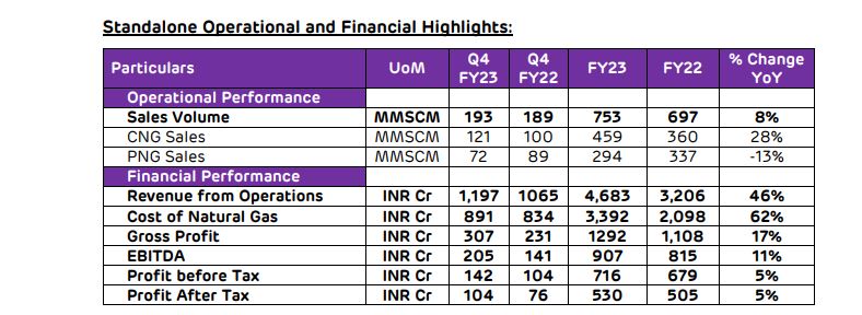 अडानी टोटल गैस लिमिटेड (“एटीजीएल”) भारत की अग्रणी सिटी गैस डिस्ट्रीब्यूशन कंपनी, ने आज 31 मार्च 2023 को समाप्त चौथी तिमाही और पूरे वर्ष के लिए अपने परिचालन और वित्तीय प्रदर्शन की घोषणा की।