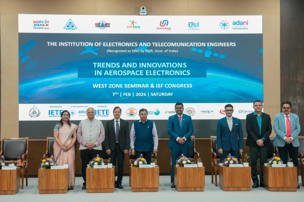 अदाणी विश्वविद्यालय ने आईईटीई पश्चिम क्षेत्र सेमिनार और आईईटीई छात्रों के फोरम (ISF) कांग्रेस 2026 के लिए एक प्रमुख शैक्षणिक केंद्र के रूप में अपना स्थान मजबूत किया। इस कार्यक्रम का विषय था “एयरोस्पेस इलेक्ट्रॉनिक्स में प्रवृत्तियाँ और नवाचार।”