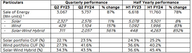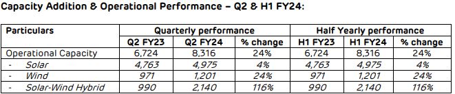 - बेहतर संयंत्र उपलब्धता और बेहतर सौर विकिरण के साथ सौर पोर्टफोलियो सीयूएफ वित्त वर्ष 2024 की पहली छमाही में 90 बीपीएस बढ़कर 25.2% हो गया है।