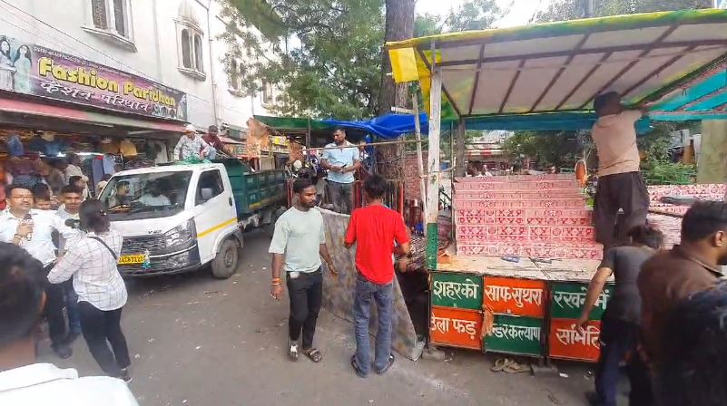 दुकानों के आगे स्थायी निर्माण को तुड़वाया