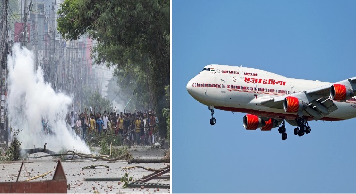 बांग्लादेश में सरकार का तख्तापलट हो गया है। शेख हसीना ने प्रधानमंत्री पद से इस्तीफा दे दिया और सैन्य हेलीकॉप्टर की मदद से देश छोड़कर भारत आ गई हैं। वहीं बांग्लादेश में प्रदर्शनकारी पीएम आवास में घुसकर जमकर तोड़फोड़ की। इस दौरान संसद भवन में पहुचंकर जमकर नारेबाजी के साथ तोड़फोड़ कर रहे हैं। इतना ही नहीं बंग बंधु मेमोरियल पर प्रदर्शनकारियों ने बुलडोजर चलाया। इसके अलावा ढाका की सड़कों पर जमकर उपद्रव और आगजनी हो रही है। इसी बीच एयर इंडिया ने एक बड़ी जानकारी साझा की है।