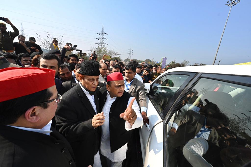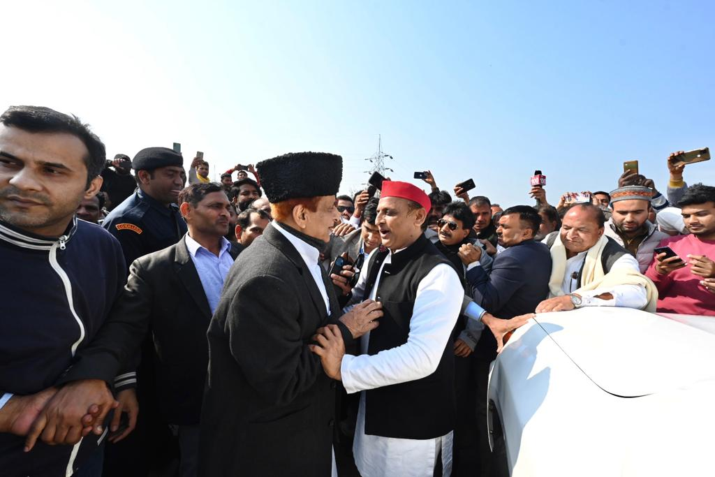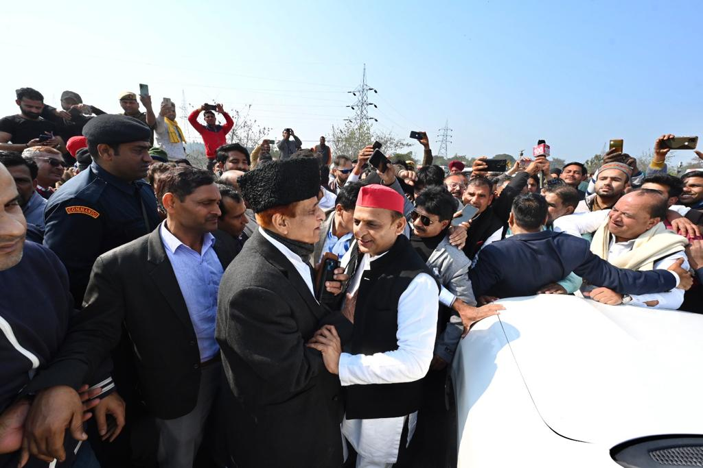 अखिलेश यादव शनिवार को बरेली से सड़क मार्ग से मुरादाबाद पहुंचे। सड़क मार्ग से अखिलेश यादव के मुरादाबाद जाते समय अखिलेश यादव का रामपुर में सपा नेता आजम खां और पार्टी के अन्य कार्यकर्ताओं ने जोरदार स्वागत किया। इसके बाद आजम खां अखिलेश यादव के साथ उनकी कार में बैठकर मुरादाबाद के लिए रवाना हो गए। इस दौरान सुरक्षा के कड़े इंतजाम रहे। अखिलेश यादव और आजम खां के मुलाकात की कुछ तस्वीरें सोशल मीडिया पर वायरल हो रही है।