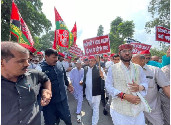 आपको बता दें कि प्रदेश में बढ़ती बेरोजगारी, महंगाई, लचर कानून व्यस्था, बढ़ते अपराध को लेकर सपा, सरकार के विरोध में विधानसभा तक पैदल ही जानें की रणनीति में थी हालांकि प्रशासन नें उनको जानें नही दिया. पुलिस नें कहा कि बिना अनुमति के ये धरना दिया जा रहा है. आपको बता दें कि आज से विधान सभा का 5 दिवसीय मानसून सत्र शुरु हुआ है.
