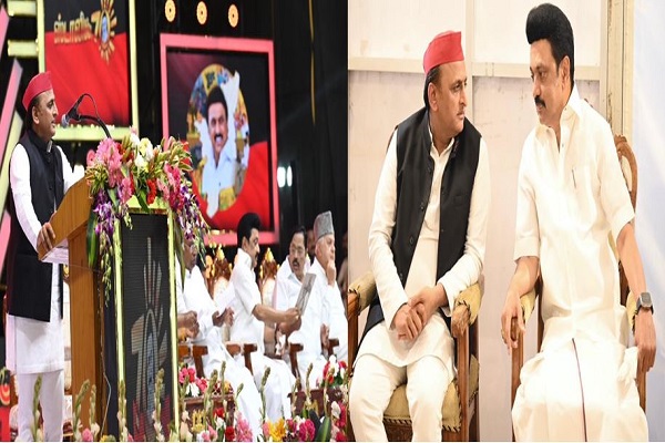 अखिलेश यादव कल तमिलनाडु के मुख्यमंत्री और डी.एम.के. के अध्यक्ष एम.के. स्टालिन के जन्म दिन समारोह में विशिष्ट अतिथि रहे। यहां अखिलेश यादव का शाल ओढ़ाकर और पुष्प गुच्छ भेंट कर स्वागत किया है। इस दौरान अखिलेश यादव ने कहा कि एम.के. स्टालिन ने तमिलनाडु के विकास के लिए बेहतरीन काम किया है। सीएम स्टालिन 1976 में आपातकाल के खिलाफ जेल भी गए। शिक्षा, स्वास्थ्य के क्षेत्र में उन्होंने उल्लेखनीय कार्य किया है।