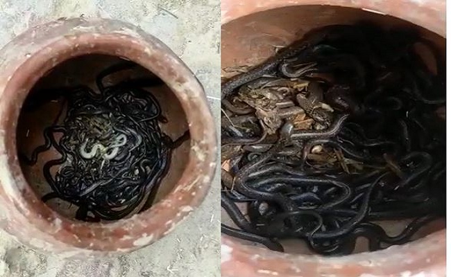 मामला अम्बेडकरनगर जिले के आलापुर तहसील क्षेत्र के मदुआना गांव का है। जहां पर एक किसान के घर से सैंकड़ो की संख्या में अचानक सांप मिलने से हड़कंप मच गया। दरअसल घर के भीतर मिट्टी से बना बर्तन रखा हुआ था और उसी बर्तन को सांपो ने अपना ठिकाना बनाया। परिवारवालों के मुताबिक कई दिन से घर के भीतर से एक अजीब सी आवाज आया करती थी। लेकिन किसी ने ध्यान नही दिया। पुराना चावल पकाने के लिए जब महिला मिट्टी के वर्तन के पास गई तो वहां रखे मिट्टी के घड़े के भीतर का नजारा देख होश उड़ गए क्योंकि जिस वर्तन में चावल हुआ करता था उसे सांपो ने अपना ठिकाना बनाया लिया था। जैसे ही इतनी बड़ी संख्या में सांप मिलने की सूचना बाहर पहुंची तो आस-पास के लोग भी इकठ्ठा हो गए और तरह-तरह की चर्चाएं भी शुरू हो गयी।