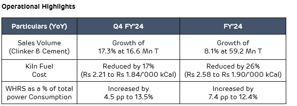 - अनुकूलित ईंधन बास्केट, बेहतर लिंकेज कोयला सामग्रीकरण और समूह कंपनियों के साथ तालमेल के परिणामस्वरूप भट्ठा ईंधन लागत (समेकित) में 17% की कमी आई है। 2.21 से 1.84 प्रति ‘000 किलो कैलोरी।