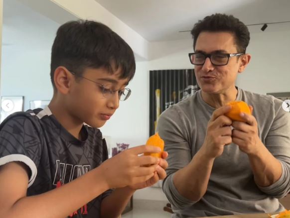 बॉलीवुड एक्टर आमिर खान ने अपने इंस्टाग्राम अकाउंट पर अपने बेटे आजाद के साथ कई तस्वीरें शेयर की हैं। जिसमें दोनों को एक साथ आम का आनंद लेते देखा जा सकता है और उनके चेहरे पर खुशी साफ देखी जा सकती है। बता दे कि पहली तस्वीर में, आमिर एक आम छील रहे हैं, जबकि आजाद शायद अपनी बारी का इंतजार कर रहे हैं।
