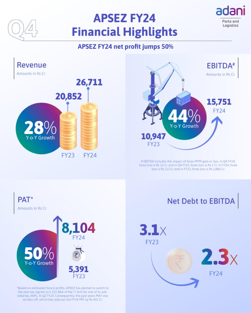 Adani Group: APSEZ FY24 वित्तीय हाइलाइट्स, APSEZ FY24 का शुद्ध लाभ 50% बढ़ा https://www.youtube.com/watch?v=mGt1nxhBjuk