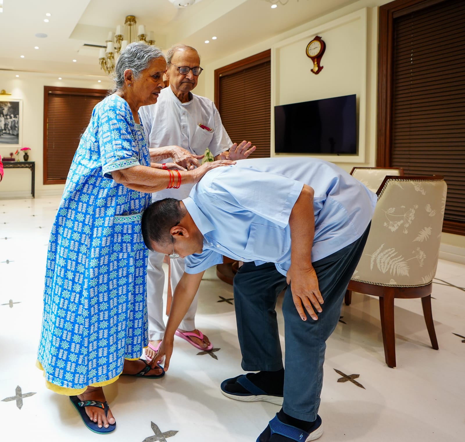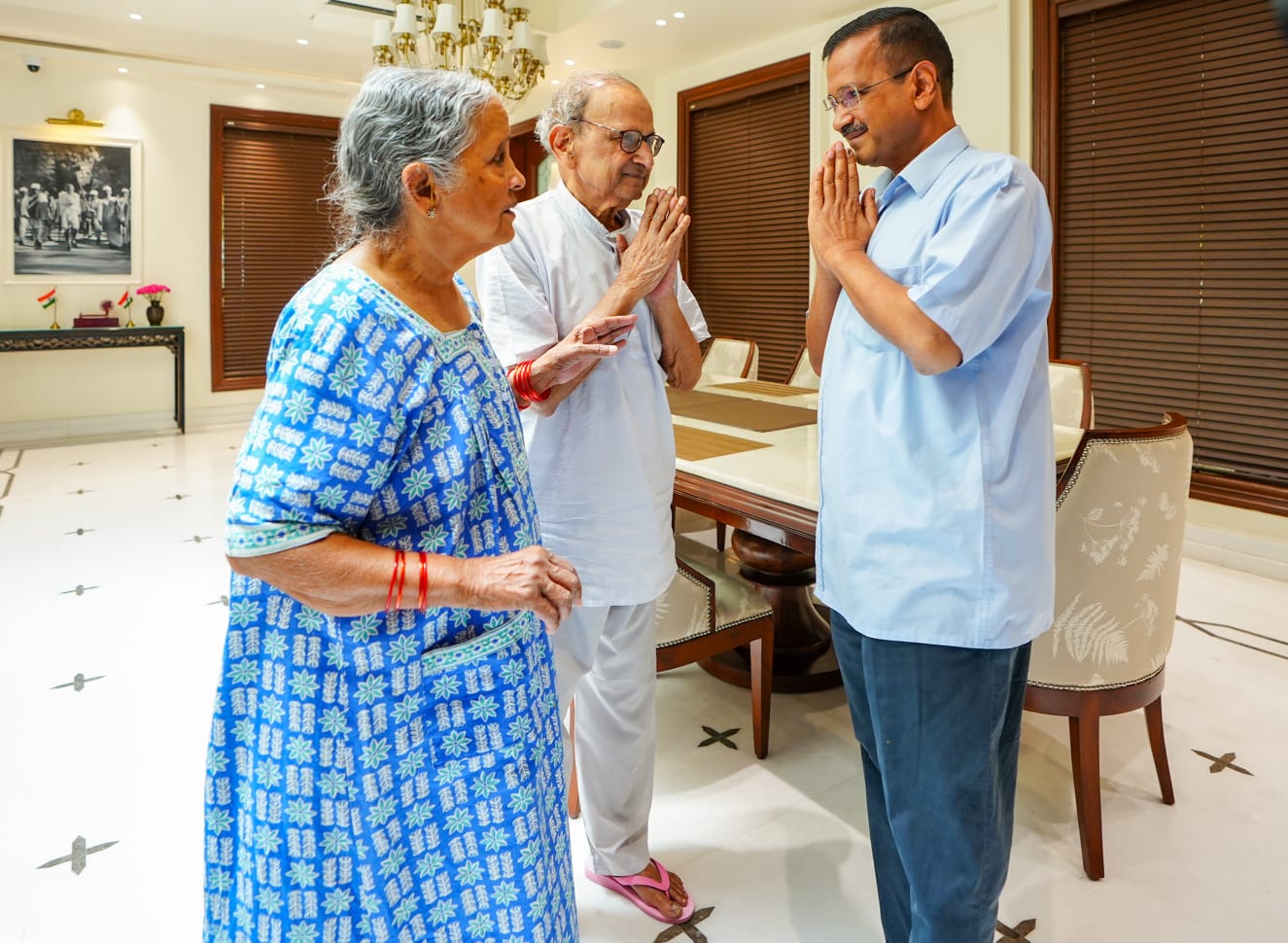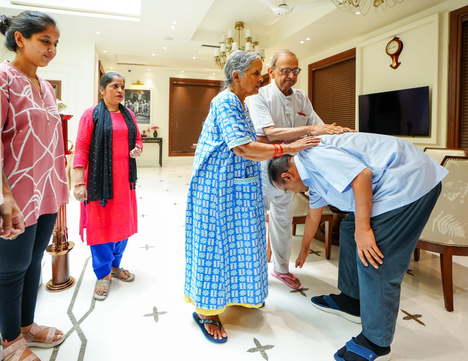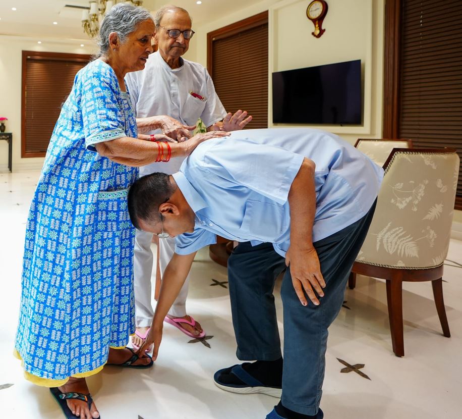दिल्ली के मुख्यमंत्री अरविंद केजरीवाल ने घर से निकलने से पहले माता पिता का आशीर्वाद लिया. घर में अपनी मां के पैर छुए.इसके बाद सीएम राजघाट के लिए निकल गए. पार्टी की तरफ से कहा गया कि ‘माता-पिता का आशीर्वाद लेकर वो चल पड़ा है लोकतंत्र बचाने.’