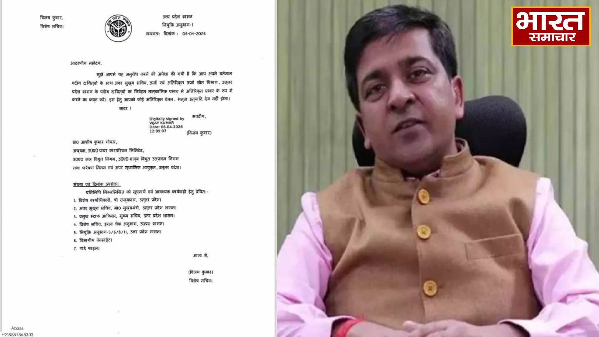 IAS आशीष गोयल को उत्तर प्रदेश के बिजली और ऊर्जा विभाग का अतिरिक्त चार्ज सौंपा गया, अब विभाग से लेकर शासन तक उनका सीधा नियंत्रण रहेगा।