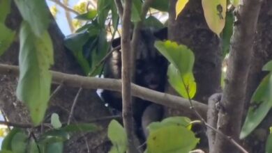 आबादी क्षेत्र में पेड़ पर बैठा दिखा नया जीव, देखने के लिए उमड़ी राहगीरों की लगी भीड़