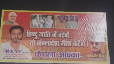 वाराणसी में लगा ” हिंदू जाति में बंटेंगे, तो बांग्लादेश जैसा कटेंगे” का होर्डिंग बना चर्चा का विषय