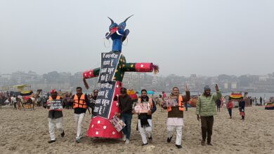 वाराणसी में समाजवादी पार्टी का गंगा में अनोखा विरोध, नाव पर सवार होकर निकला चाइनीज मांझे की अर्थी!
