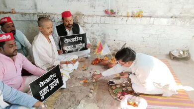 अखिलेश ने चुनाव आयोग को भेजा कफ़न तो काशी में सपा कार्यकर्ताओं ने किया पिंडदान !