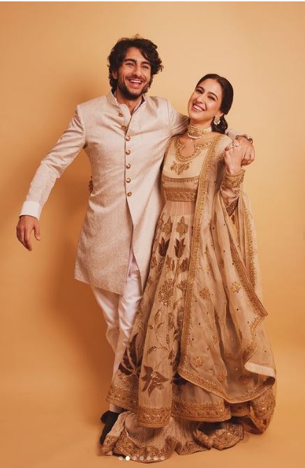 एक्ट्रेस सारा अली खान और इब्राहिम अली खान बी टाउन की सबसे चर्चित सिबलिंग जोड़ी है. इस तस्वीर में दोनों अपनी आउटफिट से एक-दूसरे को कॉम्पलीमेंट दे रहे हैं. भाई-बहन की जोड़ी नेलाइट कलर का बेज आउटफिट चुना है. इस साल भाई दूज के जश्न को शानदार बनाने के लिए इस स्टाइल को अपनाएं.