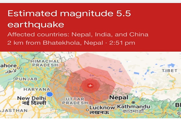 दिल्ली एनसीआर में भूकंप के झटके, लखनऊ में भी भूकंप के झटके महसूस किए गए, उत्तराखंड में भी भूकंप के झटके महसूस हुए, कुछ देर तक महसूस किए गए भूकंप झटके, दोपहर 2.53 बजे महसूस हुए भूकंप के झटके, लखनऊ में काफी देर तक धरती हिलती रही। 2 मिनट तक भूकंप के झटके महसूस किए गये।