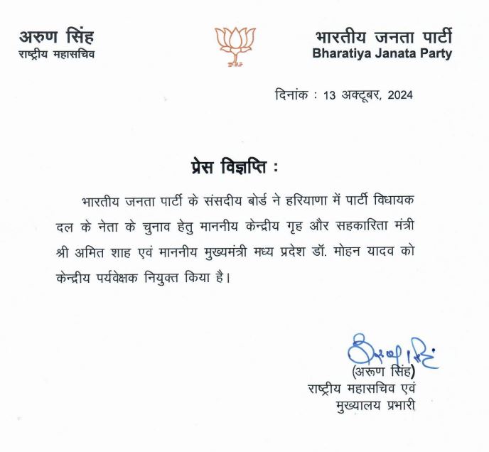 बीजेपी ने हरियाणा में अमित शाह और सीएम मोहन को सौंपी बड़ी जिम्मेदारी, जम्मू-कश्मीर में इन नेताओं को बनाया पर्यवेक्षक