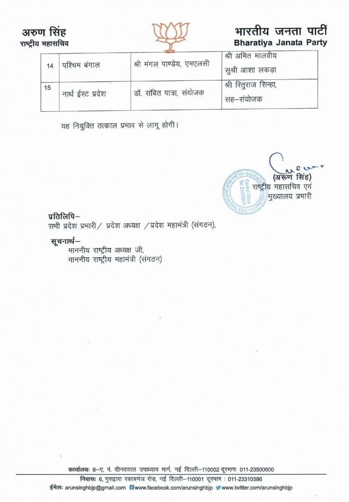 - बस्ती सांसद हरीश द्विवेदी झारखंड के सह प्रभारी बनाए गए