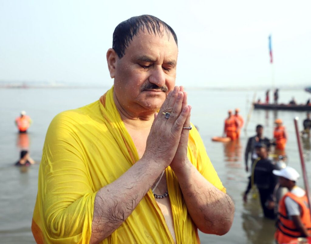 भाजपा के राष्ट्रीय अध्यक्ष जेपी नड्डा ने संगम में लगाई पावन डुबकी, सीएम योगी भी रहे संग