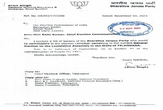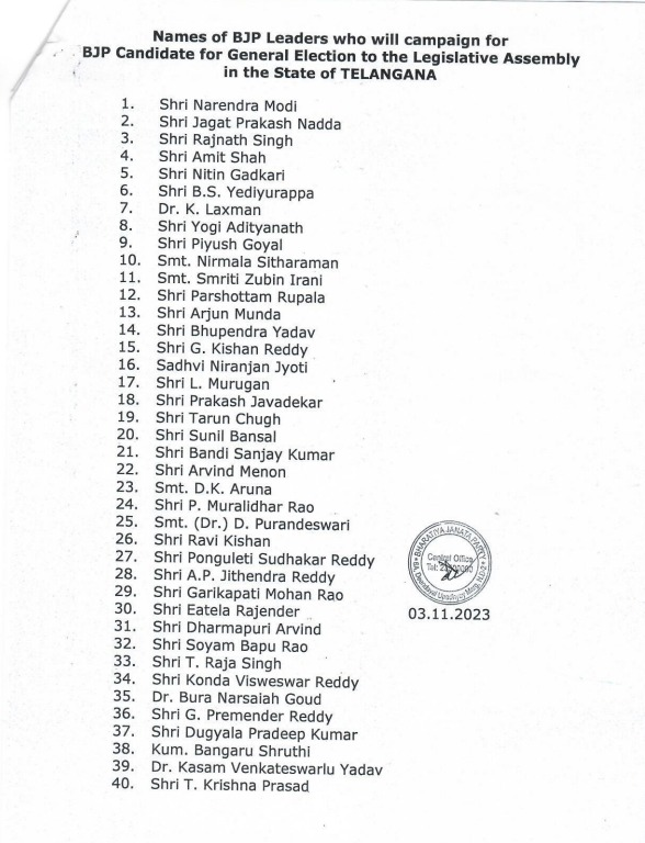 ➡तेलंगाना चुनाव के लिए 40 स्टार प्रचारक बनाए