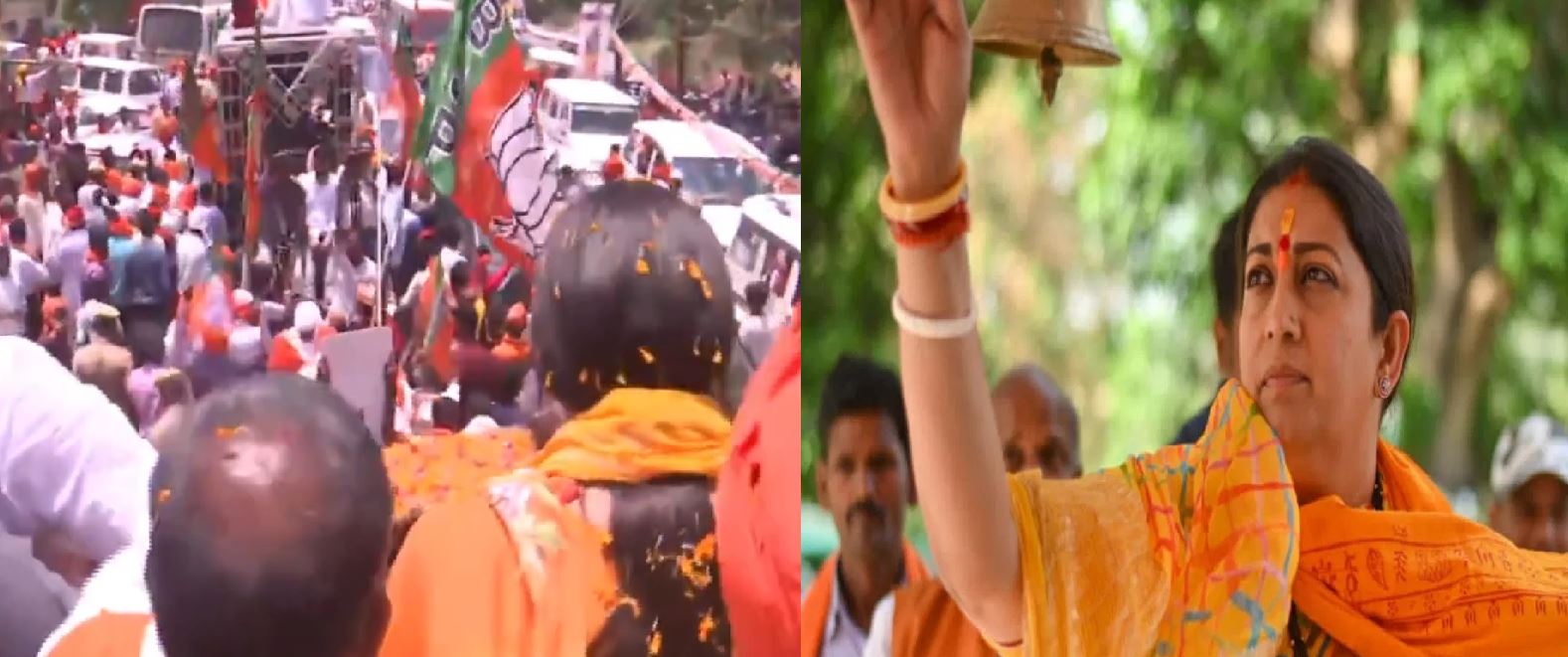 स्मृति ईरानी रथ पर सवार होकर रोड पर खड़े लोगों का अभिवादन स्वीकार करते दिखी है.सड़क के दोनों ओर लोगों की भारी भीड़ दिखाई दी. एमपी के सीएम मोहन यादव नामांकन रथ पर मौजूद है.