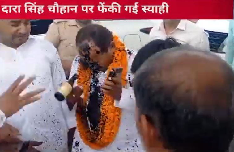 यहां अराजकत्तवों ने उनते ऊपर स्याही फेंकी. कहा जा रहा है कि समाजवादी पार्टी छोड़ भाजपा प्रत्याशी बनाए जाने पर दारा सिंह चौहान से सपा समर्थकों में नाराजगी है. जिसका नजारा जगह-जगह देखने को मिल रहा है. जानकारी के मुताबिक स्याही फेंक आरोपी भाग गया है. जिसकी तलाश में पुलिस जुट गई है.