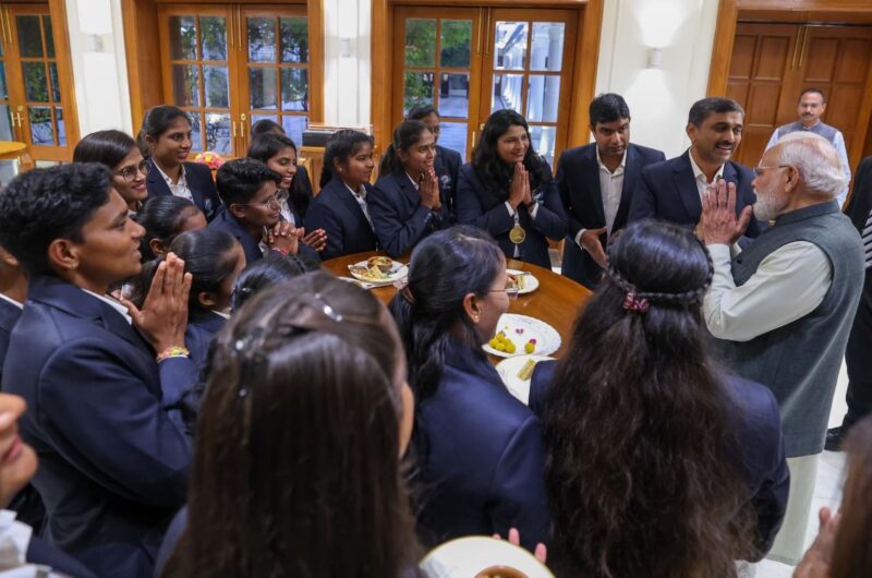 पीएम मोदी ने खिलाड़ियों के जज़्बे की सराहना की और उनके प्रदर्शन की तारीफ करते हुए उनका हौसला बढ़ाया। मुलाकात के दौरान प्रधानमंत्री ने खिलाड़ियों को अपने हाथों से मिठाई खिलाई।