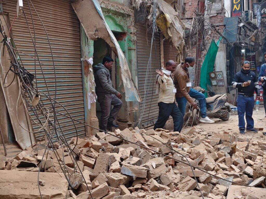 वाराणसी। पूर्वांचल के सबसे बड़े मंडी दालमंडी के चौड़ीकरण का कार्य तेजी से किया जा रहा है। चौड़ीकरण के तहत 186 मकानों को ध्वस्त किया जाना है। जिसमें अब तक करीब 6 मकानों को ध्वस्त किया जा चुका है। वही रविवार को दालमंडी में अब बुलडोजर की एंट्री हो गई है। बुलडोजर की एंट्री से दालमंडी के व्यापारियों में हड़कंप मच गया है। दालमंडी की ज्यादातर दुकानें बंद है, वही एतिहात के तौर पर पुलिस और पैरा मिलिट्री फोर्स की तैनाती की गई है। अधिकारियों के अनुसार अब तक वाराणसी के दालमंडी में करीब 20 से अधिक मकानों की पूरी तरह रजिस्ट्री की जा चुकी है और उनके मालिकों को मुआवजा दिया जा चुका है।