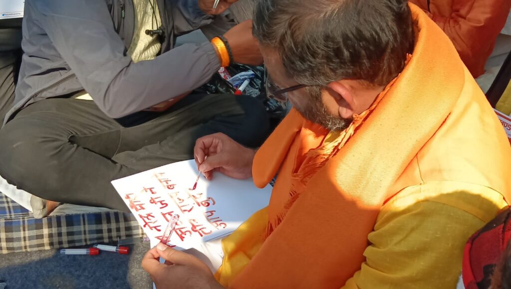 बुंदेलखंड राष्ट्र समिति ने खून से पत्र लिखकर बुंदेलखंड राज्य की माँग की, जंतर–मंतर पर महाधरना