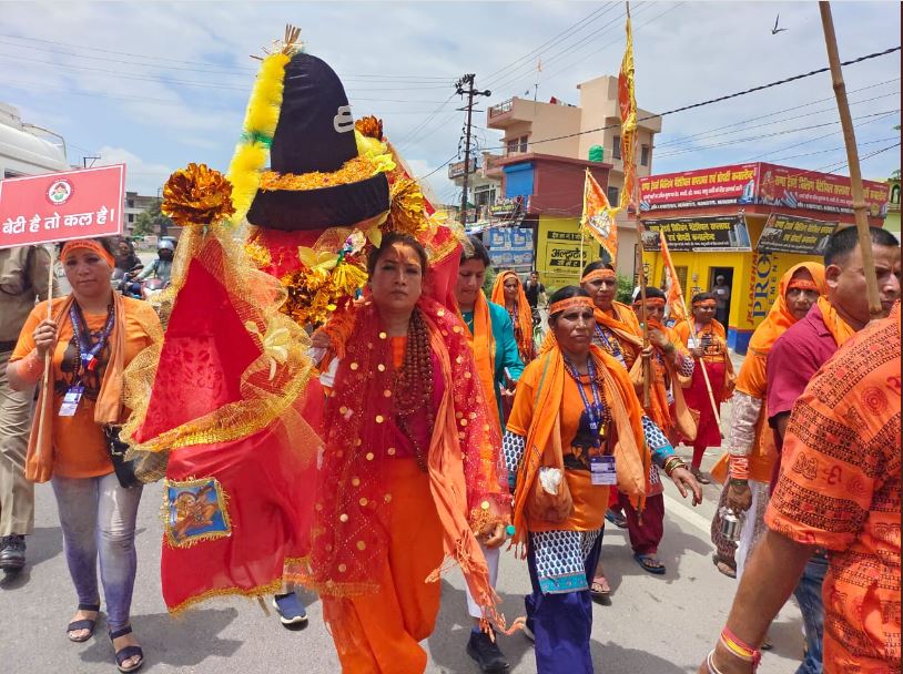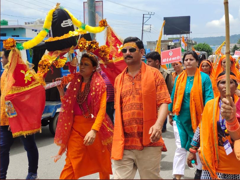 मंत्री के स्वागत में आयोजित कार्यक्रम में भजनों पर श्रद्धालु झूमते नजर आए। बता दें कि, हरिद्वार से 25 किलोमीटर पैदल कांवड लेकर पहुंची कैबिनेट मंत्री रेखा का जगह-जगह पुष्प वर्षा से स्वागत भी किया गया।
