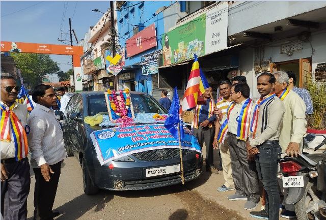 इससे पूर्व संस्था के कार्यालय पर समाज के वरिष्ठ नागरिकों द्वारा बाबा साहब की चित्र पर पार्षद पति धर्मेंद्र जैन संस्था के अध्यक्ष महाराज सिंह मलैया, भारतवासी डॉ कपिल कदम, जिला कांग्रेस कमेटी के सचिव हरिशंकर , विनोद पथरोलिया, राजू प्रसाद, डॉ नवाब सिंह, प्रदीप, डॉ भोज, कैलाश चंद्र मरिया, जिला पंचायत सीईओ अशोक निम, हरेंद्र ने विचार व्यक्त किए तथा मिठाई विस्तृत की उसके बाद महेश चंद्र मरिया द्वारा झंडी दिखाकर रैली को फूल बाग के लिए रवाना किया गया।
