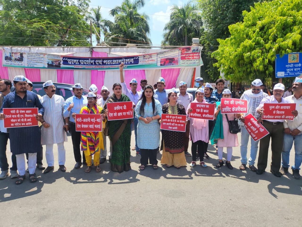 इस विरोध प्रदर्शन में प्रदेश महासचिव रोहित गुप्ता जिला अध्यक्ष अमित शर्मा, पूर्व प्रदेश प्रवक्ता भानु परिहार, ओपी उपमन्यु,भगवान सिंह कुशवाहा, वीरेंद्र सिसोदिया, जितेंद्र अंबुज, सुमित पाल,सतीश राय, आशीष राय, कुलदीप बाथम, मनीषा बंसल, हमीद खान, ममता राठौर पवन चोपड़ा अन्य कार्यकर्ता उपस्थित आदमी पार्टी के राष्ट्रीय पार्टी बनने और दिन रात देश में बढ़ती जा रही लोकप्रियता से बुरी तरह डरी केंद्र की मोदी सरकार की तानाशाही की अब इंतिहा हो रही हैं मोदी जी ने अपनी पालतू तोता एजेंसी सीबीआई के द्वारा आम आदमी पार्टी के मुखिया हम सब के प्रेरणा स्त्रोत और आदर्श श्री अरविंद केजरीवाल जी को गिरफ्तार करने का साजिश है। ये हम सबके लिए चुनौती हैं जिसका पूरा देश जबरदस्त विरोध प्रदर्शन कर रहा है.