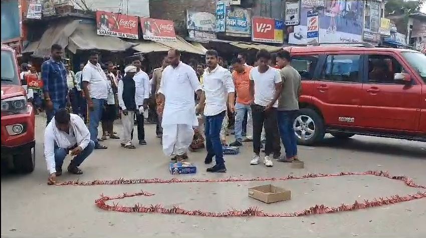 दरअसल, सपा ने मऊ जिले के घोसी विधानसभा में हुए उपचुनाव को 42 हजार से ज्यादा वोट से जीत लिया है। सपा के उम्मीदवार सुधाकर सिंह ने भाजपा के दारा सिंह चौहान को करारी शिकस्त दी है। इसकी जानकारी होने के बाद चंदौली के सैयदराजा से सपा के पूर्व विधायक मनोज सिंह ने खुशी का इजहार किया। आनन-फानन में मनोज सिंह डब्लू ने डीडीयू नगर कस्बा में समर्थकों के द्वारा लाए गए फटाखों को फोड़ने के लिए काली मंदिर के सामने पहल किया।