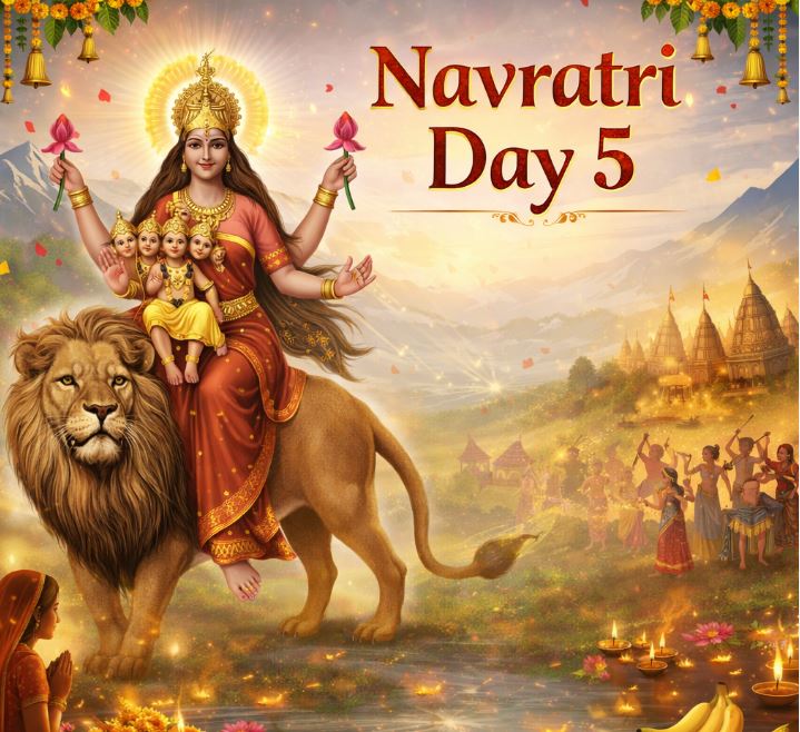 इस दिन सुबह स्नान कर स्वच्छ वस्त्र धारण करें और घर के मंदिर में मां स्कंदमाता की प्रतिमा या तस्वीर स्थापित करें। उन्हें पीले या सफेद फूल अर्पित करें और धूप-दीप जलाएं। इसके बाद मां को केले का भोग लगाना विशेष फलदायी माना जाता है। पूजा के दौरान “ॐ देवी स्कंदमातायै नमः” मंत्र का जाप करें और मां की आरती करें।