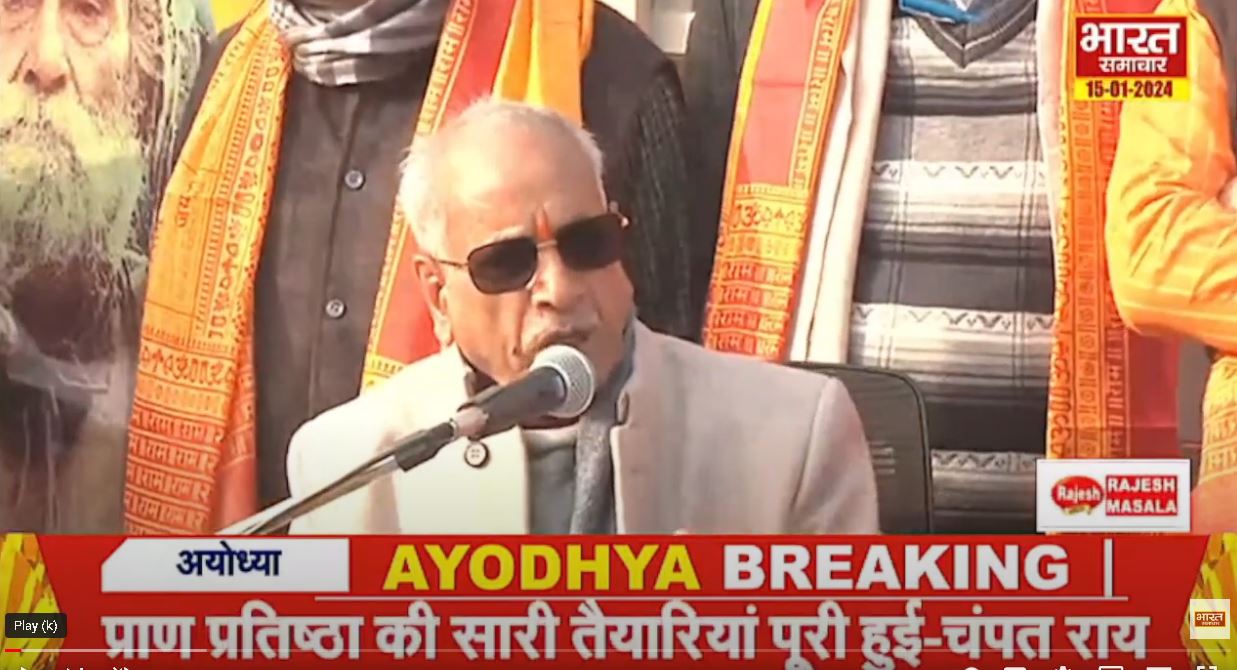 प्राण प्रतिष्ठा को लेकर चंपत राय ने दी कई महत्वपूर्ण जानकारी …इस दिन गर्भ गृह में मूर्ति होगी स्थापित !