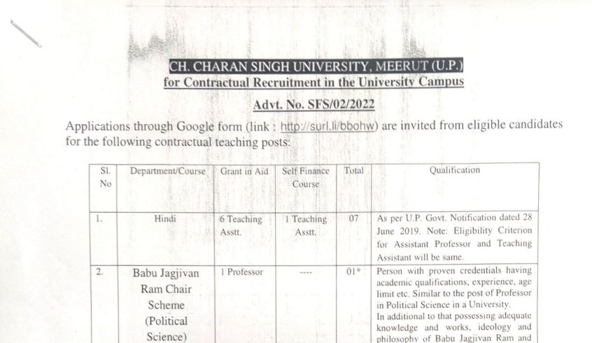 चौधरी चरणसिंह विश्वविद्यालय ने विज्ञापन संख्या SFS/01/2022 और SFS/02/2022 के जरिये विश्वविद्यालय कैंपस के विभिन्न विभागों में नियुक्ति के लिए विश्वविद्यालय की बेबसाइट पर वित्रापन प्रकाशित किये थे. गूगल लिंक के जरिये आवेदकों को अपने आवेदन फाइल करने थे. यह भर्तियां संविदा/अस्थाई तौर पर शिक्षण सहायक एवं सहायक आचार्य /सह आचार्य पदों के लिए थी. लेकिन इन भर्तियों के विज्ञापन में इस चीज का कोई उल्लेख नही था कि किस पद के लिए क्या आरक्षण है.