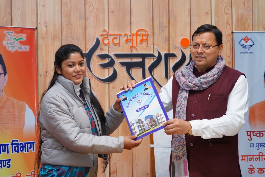 देहरादून : मुख्यमंत्री पुष्कर सिंह धामी ने शुक्रवार को मुख्यमंत्री आवास में अधीनस्थ सेवा चयन आयोग से समाज कल्याण विभाग में चयनित 35 सहायक समाज कल्याण अधिकारियों तथा 03 छात्रावास अधीक्षकों को नियुक्ति-पत्र प्रदान किए.