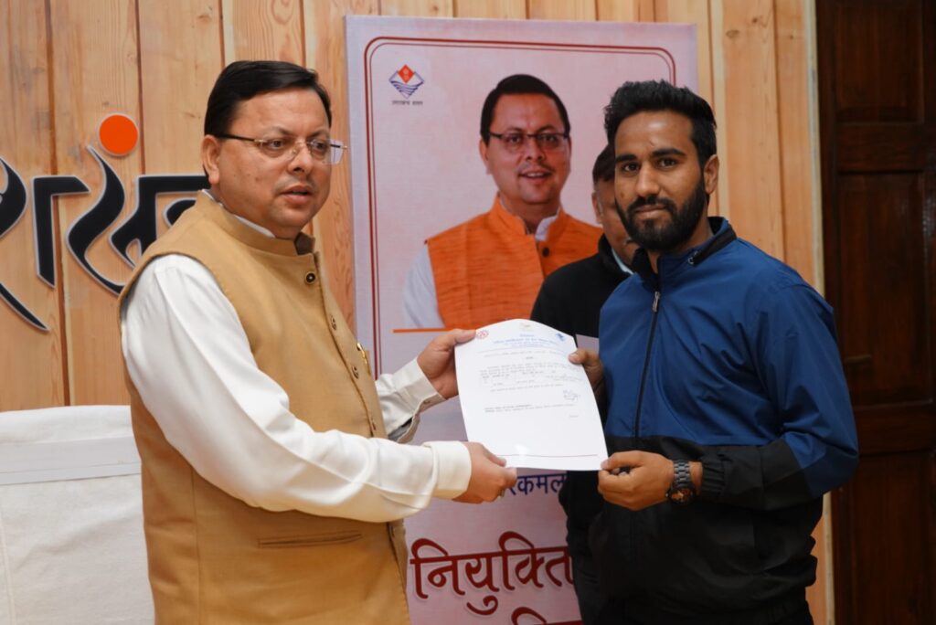देहरादून : मुख्यमंत्री पुष्कर सिंह धामी ने शनिवार को मुख्यमंत्री आवास में उत्तराखण्ड अधीनस्थ सेवा चयन आयोग के माध्यम से कनिष्ठ सहायक के पद पर चयनित 16 अभ्यर्थियों को नियुक्ति पत्र प्रदान किये। इनमें महिला सशक्तिकरण एवं बाल विकास विभाग के 12 तथा संस्कृति विभाग के 4 अभ्यर्थी भी शामिल थे.