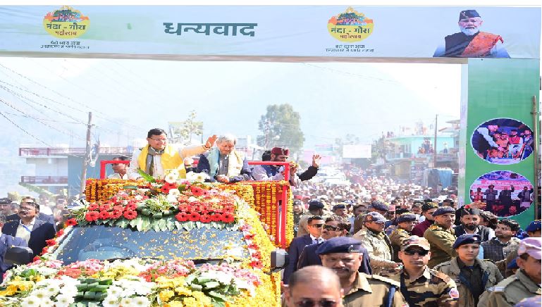 चमोली जिला प्रशासन द्वारा गौचर के मेला मैदान ने नारी शक्ति के सम्मान में आयोजित नंदा गौरा महोत्सव में शिरकत करने मुख्यमंत्री पुष्कर सिंह धामी गुरुवार को गौचर पहुचे। मुख्यमंत्री धामी ने गौचर के हेलीपैड से मेला मैदान तक रोड शो किया। इस दौरान सीएम के स्वागत में महिलाओं ने जल कलश शोभा यात्रा निकाली। सीएम ने नौ कन्याओं का पूजन करने के बाद दीप प्रज्ज्वलित कर नंदा गौरा महोत्सव का शुभारंभ किया। सीएम ने कहा कि नंदा गौरा महोत्सव का आयोजन जिले में किया जा रहा है और यह बारहवां जिला है जिसमे यह कार्यक्रम किया जा रहा है. सीएम ने कहा कि नंदा गौरा महोत्सव का मुख्य उद्देश्य महिलाओं व नारी शक्ति को सम्मान देना है.