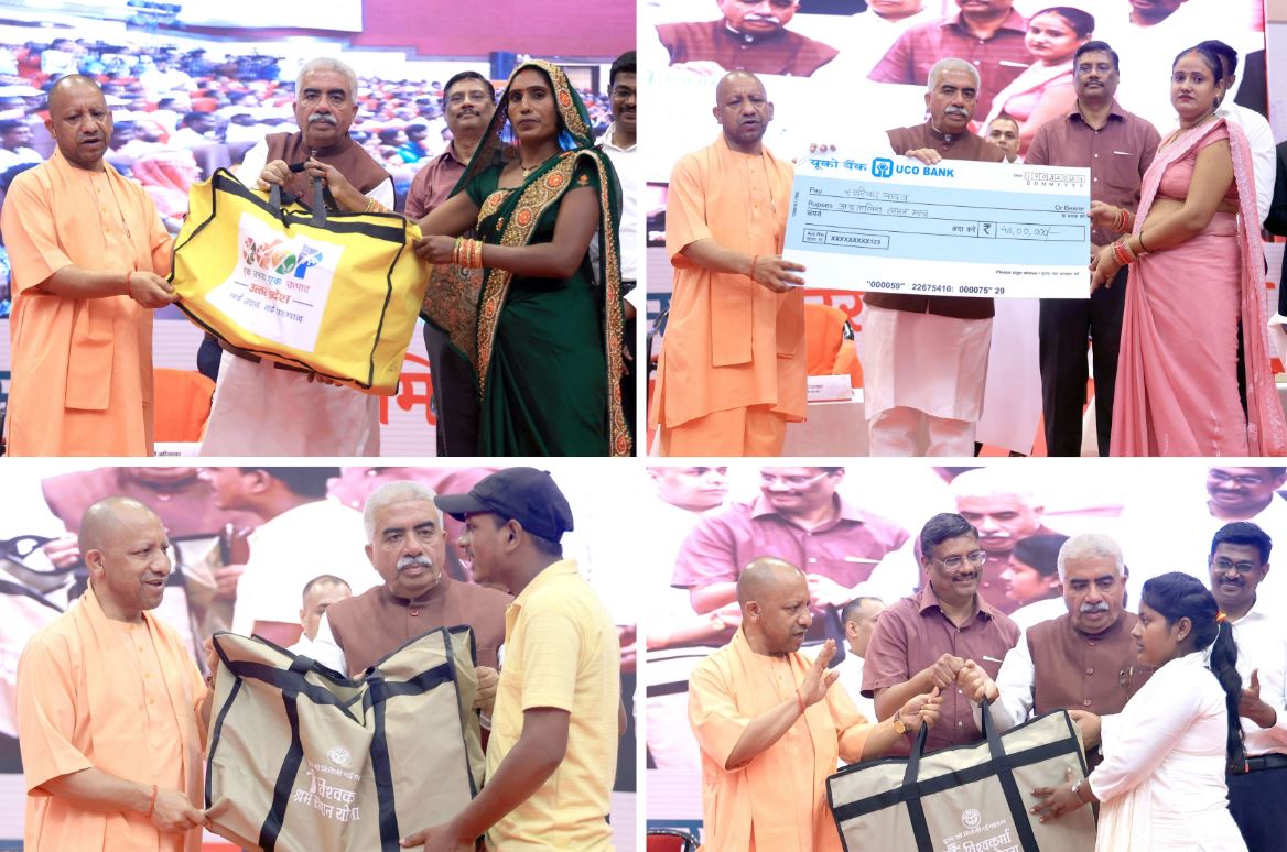 उत्तर प्रदेश के नवनिर्माण को संकल्पित सीएम योगी ने राज्य की पारंपरिक कलाओं, ओडीओपी समेत विभिन्न सेक्टर्स में कार्यरत हस्तशिल्पियों व कारीगरों की प्रशस्ति की दिशा में एक और ‘मील का पत्थर’ रखा। मंगलवार को विश्वकर्मा जयंती के अवसर पर लखनऊ के इंदिरा गांधी प्रतिष्ठान में आयोजित कार्यक्रम में सीएम योगी आदित्यनाथ की उपस्थिति में विश्वकर्मा श्रम सम्मान व ओडीओपी के अंतर्गत हस्तशिल्पियों व कारीगरों को टूलकिट प्रदान करने के साथ ही एमएसएमई इकाइयों को 50,000 करोड़ का ऋण वितरित किया। कार्यक्रम में हस्तशिल्पियों व कारीगरों के उचित सम्मान के साथ ही प्रदेश की पारंपरिक कला के प्रश्रय देने का नया मार्ग सुनिश्चित हुआ। वहीं, सीएम योगी ने कार्यक्रम में इस बात पर जोर दिया कि जाति व तमाम वादों के आधार पर बांटने की राजनीति से कल्याण नहीं होगा। उनके अनुसार, प्रदेश में शांति व सुरक्षा ही आपके भविष्य को सुधारेगा। सीएम योगी ने कहा कि प्रदेश की सुरक्षा में जो सेंध लगाने का काम करेगा वह परिणाम भुगतेगा, उसे उल्टा लटकाने का कार्य हम करेंगे।
