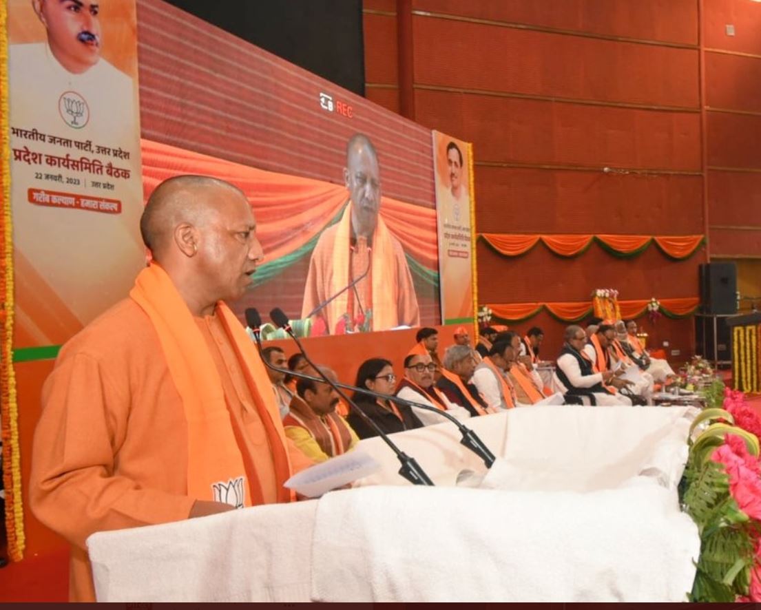 उत्तर प्रदेश के मुख्यमंत्री योगी आदित्यनाथ ने कहा कि प्रदेश कार्यसमिति के सभी सम्मानित सदस्यगण और उपस्थित भाइयों बहनों प्रदेश की राजधानी लखनऊ में सात माह के उपरांत आयोजित प्रदेश कार्यसमिति की आज की इस बैठक के उद्घाटन सत्र में मैं आप सबका ह्रदय से अभिनंदन करता हूँ ये हमारे लिए अत्यंत उत्साह और उमंग का क्षण है आज से सात माह पहले पूर्व जब हम लोगों ने मई दो हजार बाईस में भारतीय जनता पार्टी की की प्रदेश कार्यसमिति के अवसर पर स्वर्गीय Atal Bihari Vajpayee Convention Centre में हम सब मिले थे उस समय हम लोग प्रदेश में नई सरकार के गठन के एक नए उत्साह के साथ एकत्र हुए थे, नए संकल्प के साथ आगे बढ़े थे। उन्होने कहा कि प्रधानमंत्री मोदी के नेतृत्व में उनके मार्गदर्शन में देश की आबादी के सबसे बड़े राज्य Uttar Pradesh में पहली बार कोई सरकार पाँच वर्ष का कार्यकाल पूरा करने के उपरांत फिर से दो तिहाई बहुमत के साथ गठित हुई ।यह Bharatiya Janata Party ऐसे दुनिया के सबसे बड़े राजनीतिक दल के कार्यकर्ताओं के उत्साह और उमंग को स्वाभाविक रूप से आगे बढ़ाने और उसे प्रेरित करने का एक अवसर हम सबके सामने था।