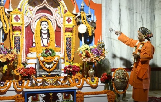 विजयादशमी के दिन प्रातः काल गोरक्षपीठाधीश्वर ने मंदिर के शक्तिपीठ में मां जगतजननी की पूजा की और इसके बाद गोरखनाथ मंदिर के गर्भगृह में जाकर महायोगी गोरखनाथ जी के समक्ष हाजिरी लगाई। मंदिर के गर्भगृह में उन्होंने विशिष्ट पूजन किया और गुरु गोरखनाथ जी की आरती उतारी।